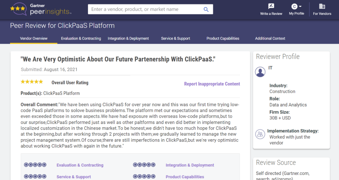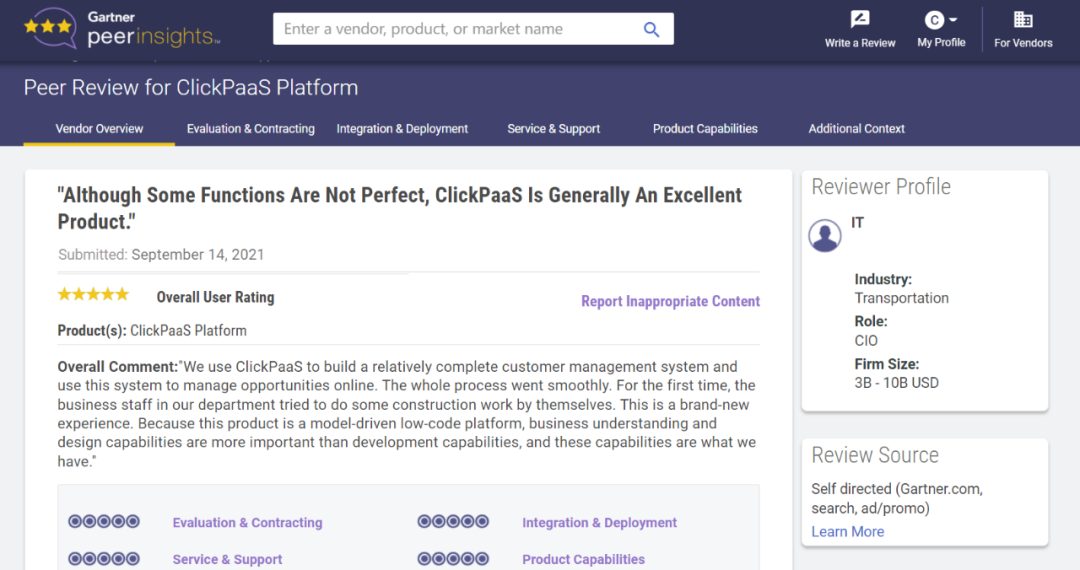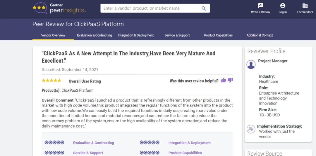 Tips::::【Peer Insights】——用户对企业IT产品和服务发布真实评价的平台。。。。目前已有355个市场,,,255,000条经过验证的评价。。每一条评价Gartner会针对参评企业营收规模及参评人员信息做验证、、、、评价内容做多维核实。。。。